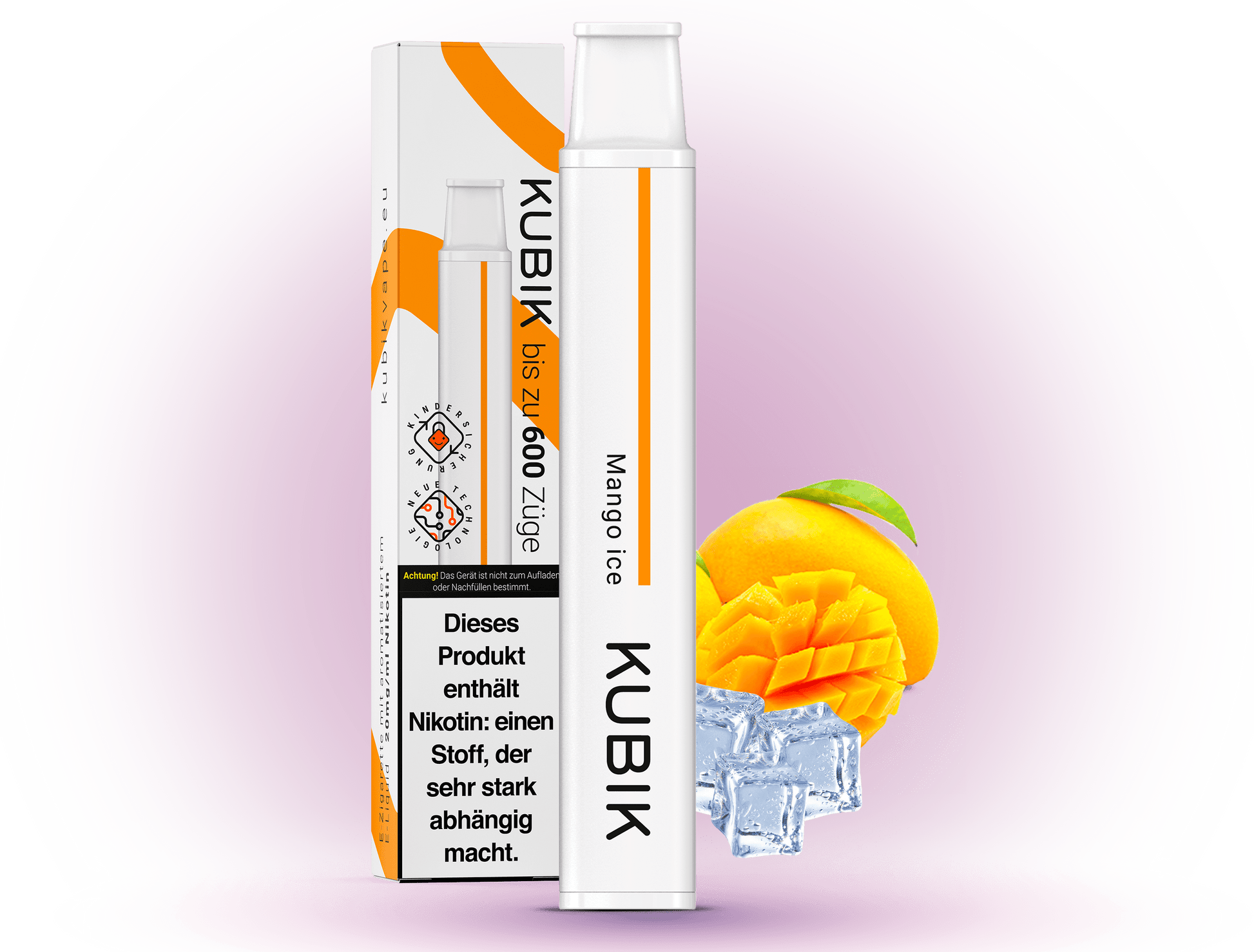 Genießen Sie den exotischen Geschmack von Kubik Mango-Ice. Diese Einweg-E-Zigarette bietet Ihnen das süße, tropische Aroma reifer Mangos kombiniert mit einem erfrischenden Eis-Effekt. Ideal für ein fruchtig-kühles Dampferlebnis, das bis zu 600 Züge lang anhält.