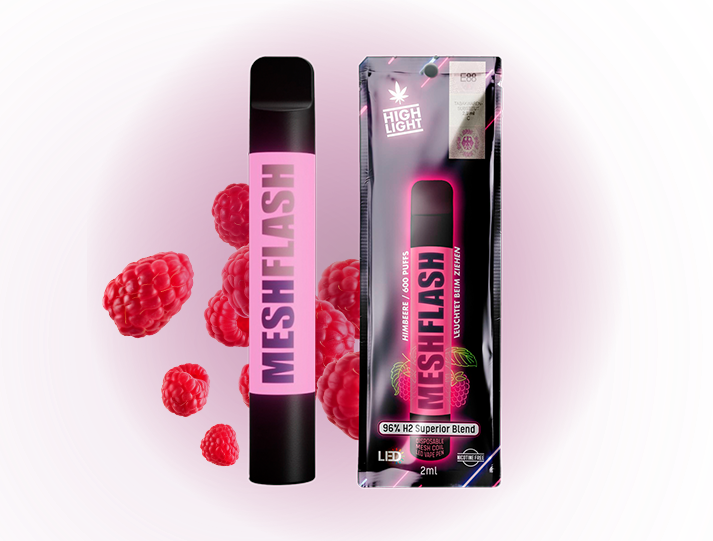 Der Meshflash H2 Superior Blend Vape – Himbeere ist das ideale Vape-Device für alle, die einen intensiven Himbeergeschmack mit starker Wirkung kombinieren möchten. Das Einweggerät enthält ganze 2ml H2 Superior Blend mit satten 96% Cannabinoidgehalt – und bietet dir bis zu 1200 Züge, ohne Aufladen oder Nachfüllen.